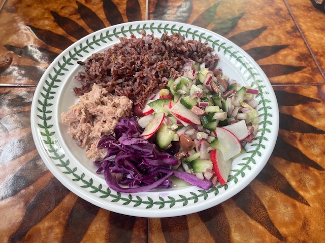 I try to eat proanthocyanidin containing food daily to protect the integrity of my arteries, veins and circulation which were damaged through surgery. Staples are red onion, radish, Kalamata olives (in salad), plus red cabbage sauerkraut and red rice, giving diversity and a layered medicinal effect.